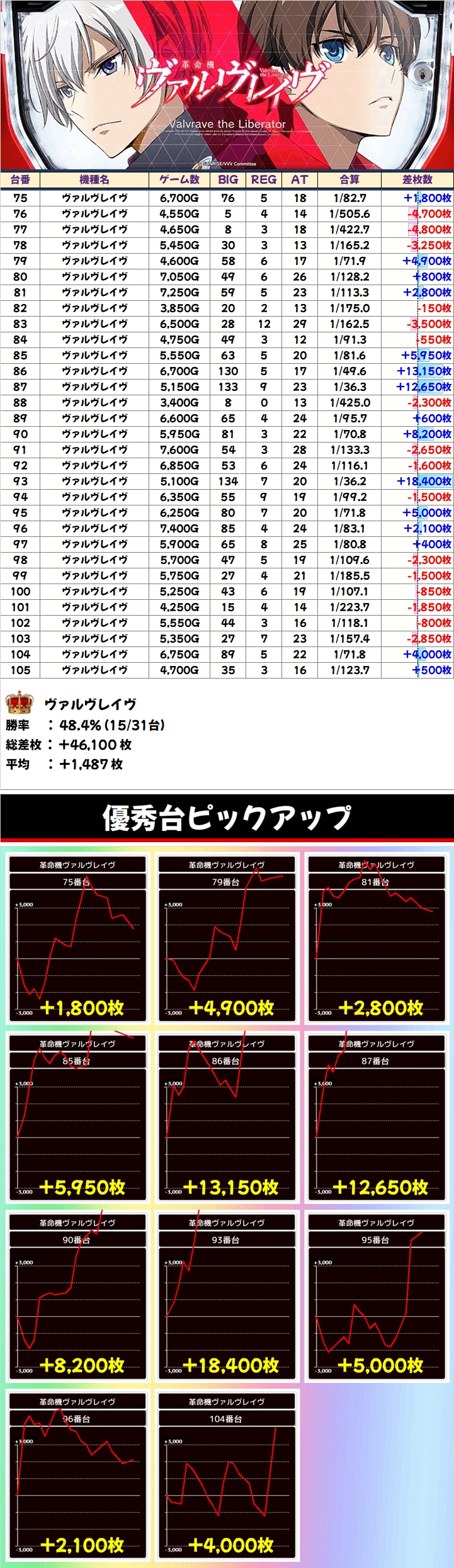 【1/2系】ヴァルヴレイヴ(15/31台+):平均+1487枚