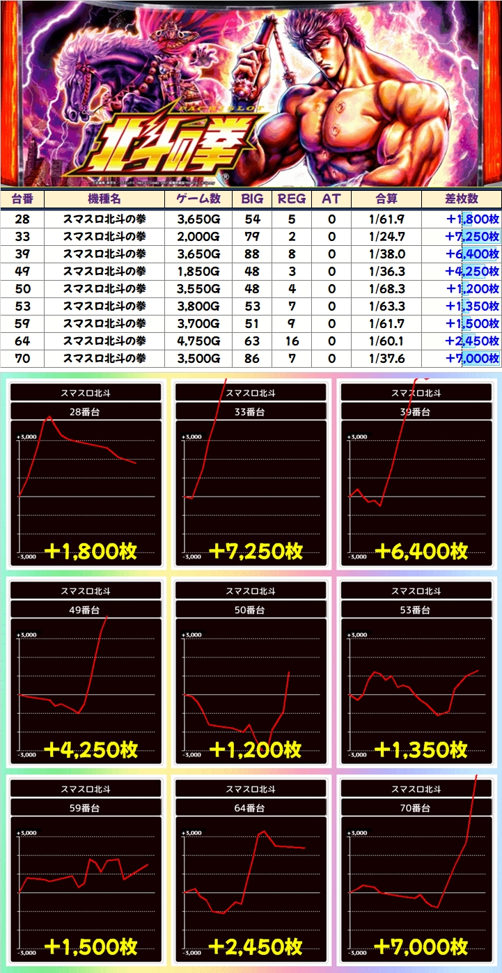 本日は万枚3台に+5000枚以上が約30台、+2000枚以上に至っては110台と盛り上がりまくりでしたね!