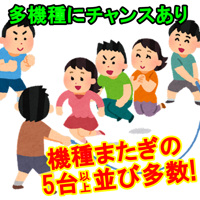 もちろんスマスロ以外にも幅広い仕掛けに期待でき、30パイ・Aタイプ・バラエティコーナーにもチャンスがあります。少台数機種は並び仕掛け絡みで全台系になるケースが多いので今回も要注目です。