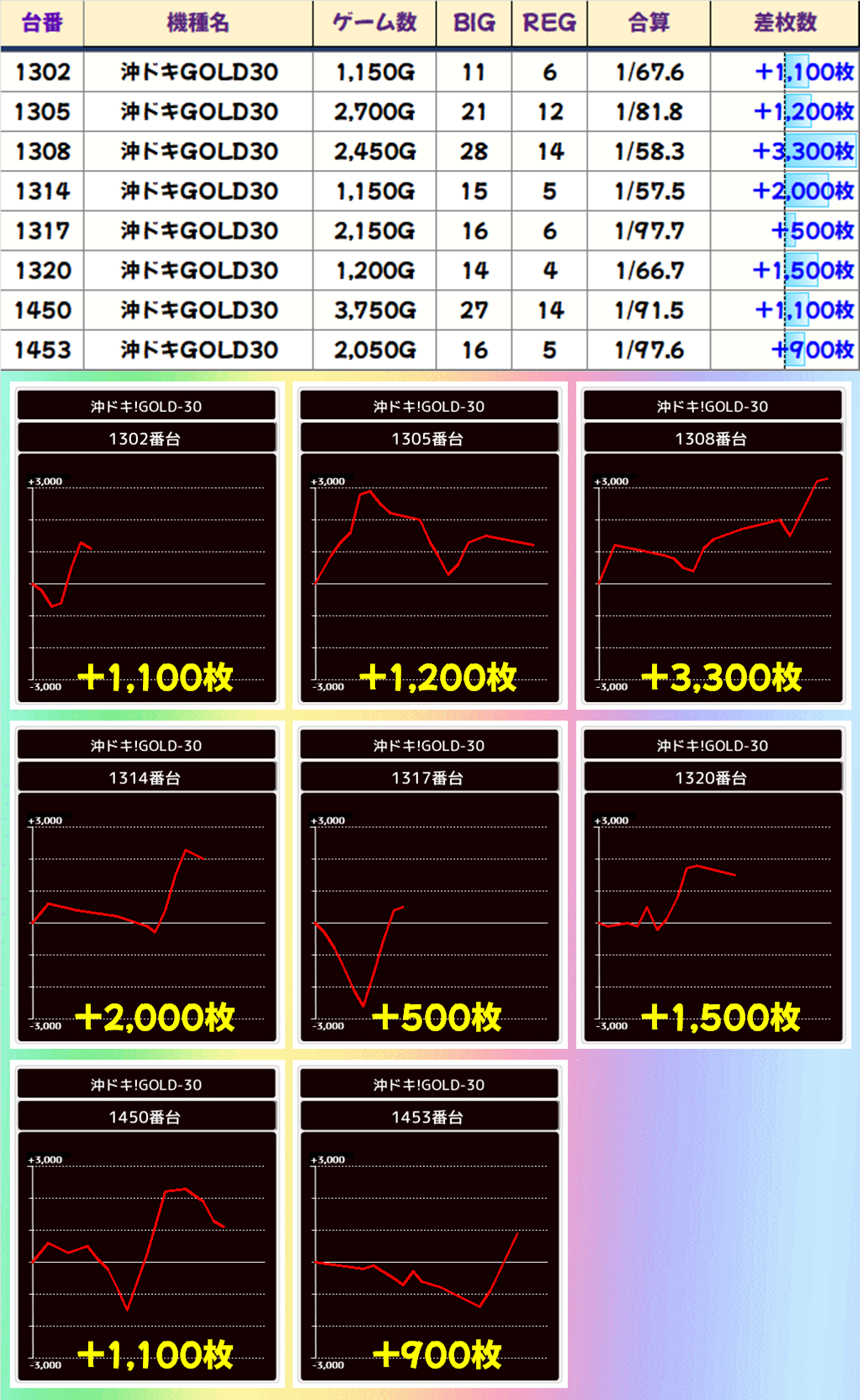 8のつく日は狙いが絞りやすい勝ちやすい1日。この傾向は次回も変わらないと思うので、次回の8のつく日も山佐系&据え置き狙いで勝利を目指しましょう!