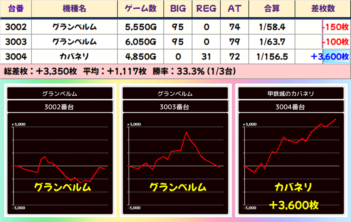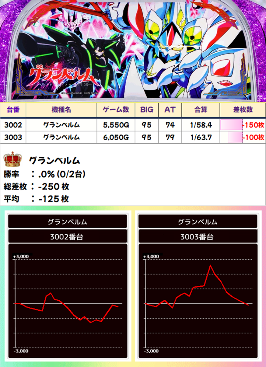 2台設置の「グランベルム」も全台系濃厚。ただ、残念ながら今回は結果がついてきませんでした…。