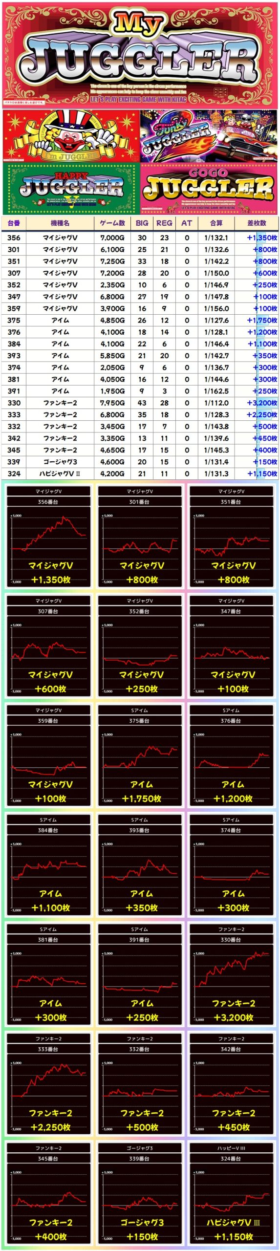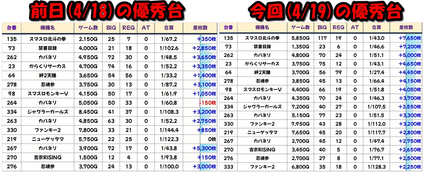 ジャグ系も前日の据え置きが多数あった印象を受けました!やはり19日は前日(18日)の優秀台チェックが必須です!