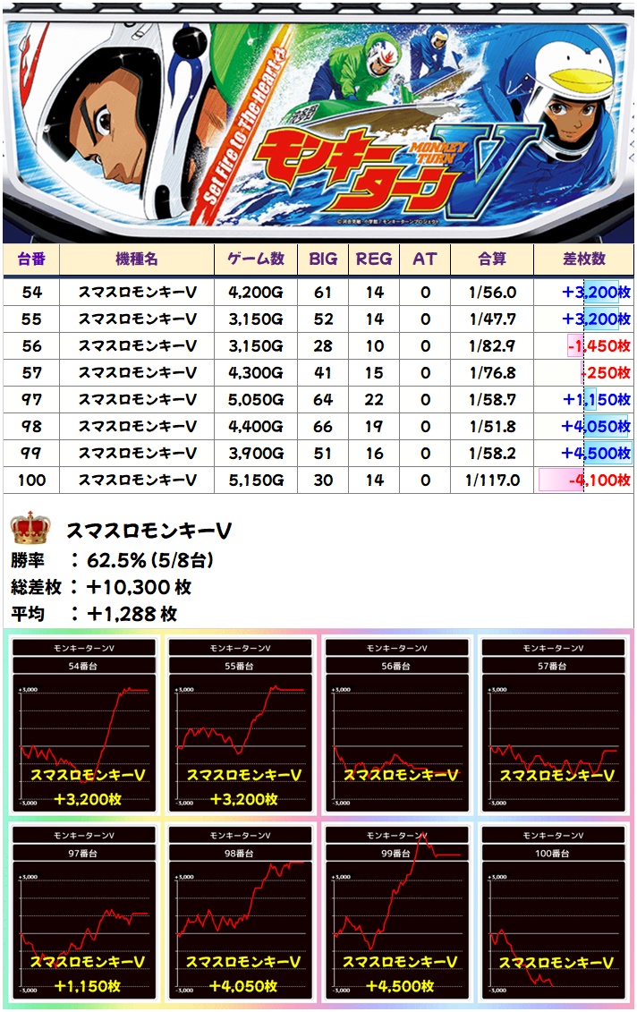 🌈スマスロモンキーV(8台)【平均+1288枚】