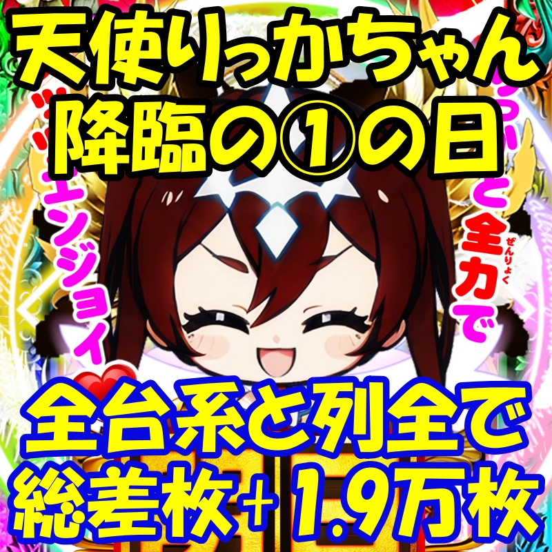 天使りっかちゃん後輪の①の日は、全台系がもりだくさん!この日も5機種が全台系濃厚でした。