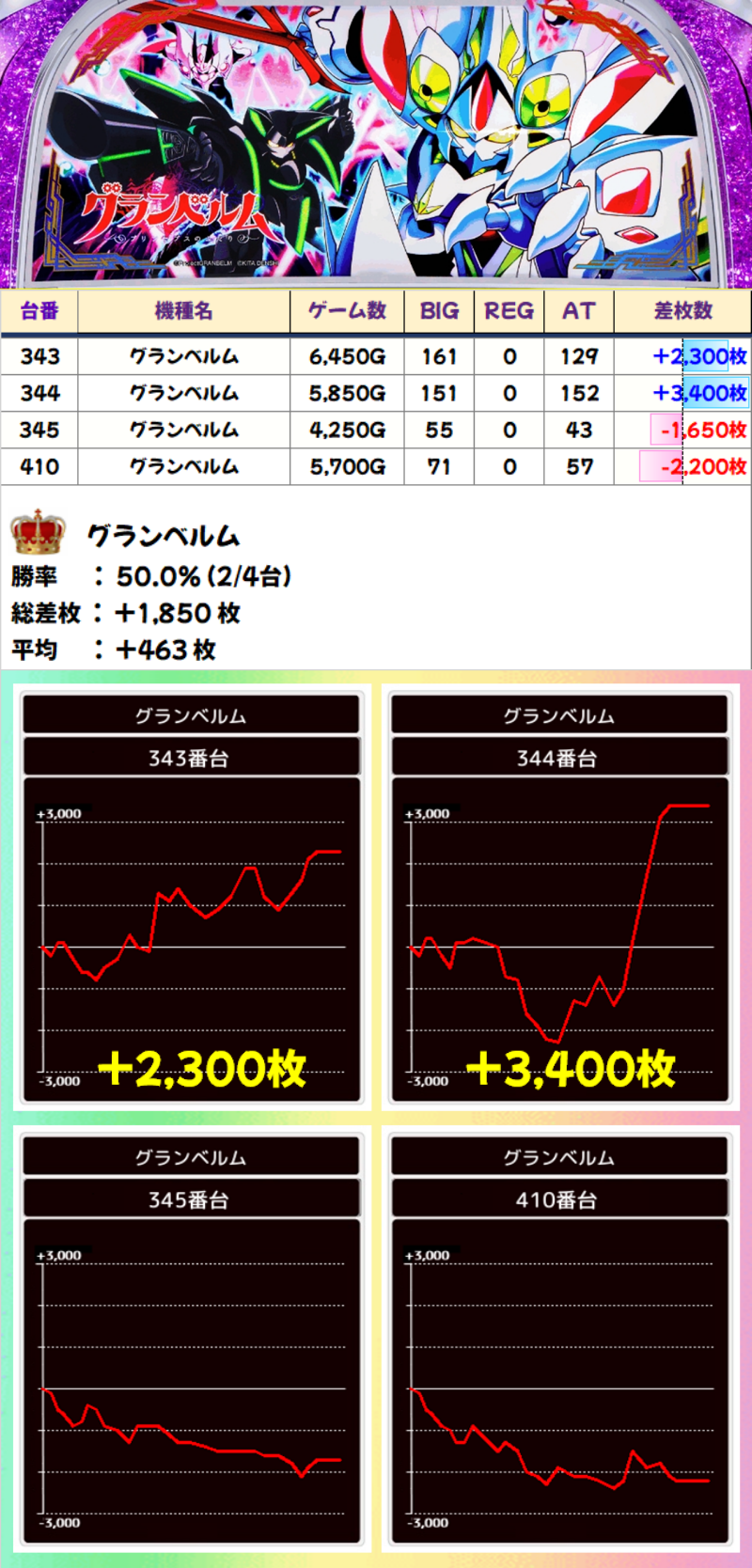 【全台系濃厚】グランベルム(2/4台)☆平均差枚+463枚☆