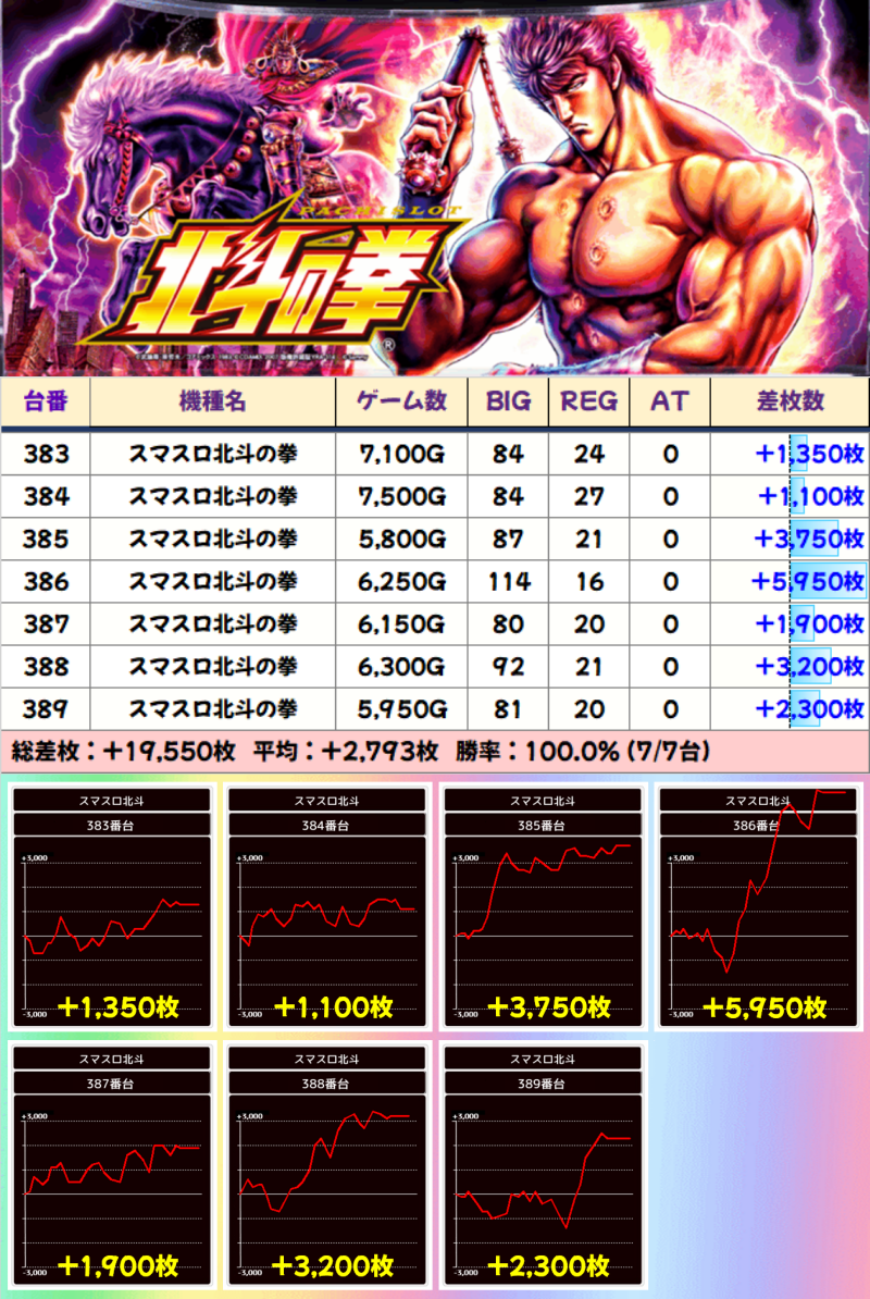 【列全系】スマスロ北斗の拳(383-389番台)☆平均差枚+2793枚☆