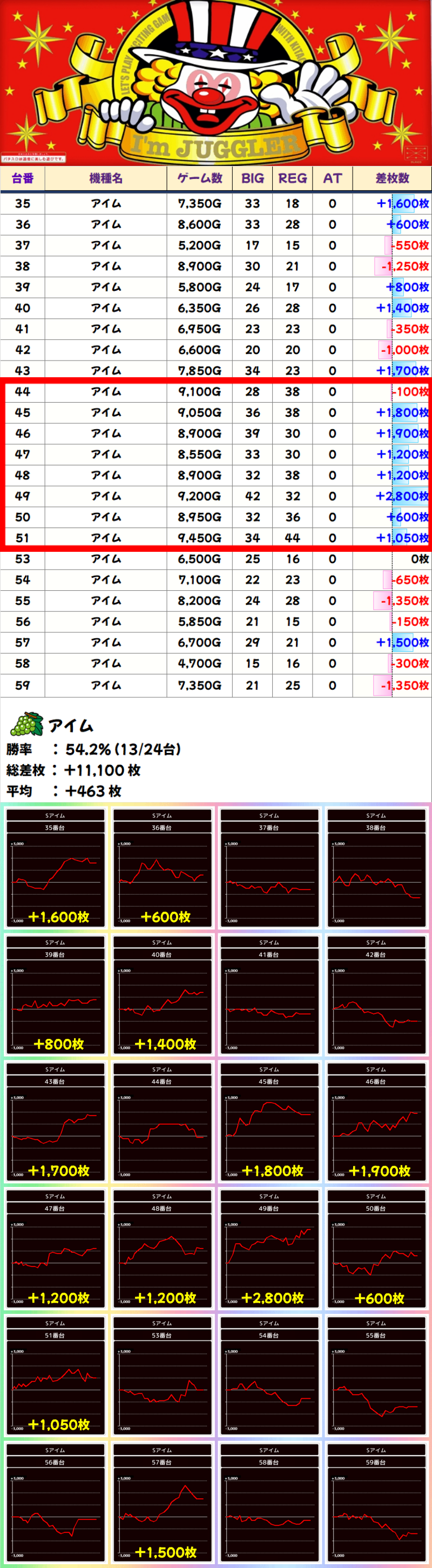 【列全系】アイムジャグラー(44-51番台)☆平均差枚+1306枚☆