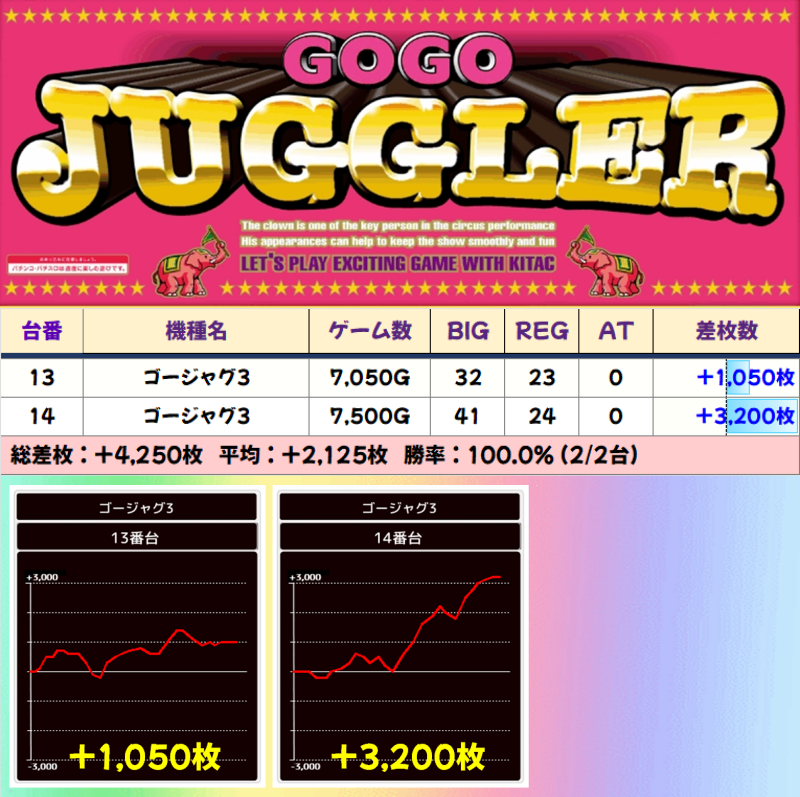【2台並び】ゴーゴージャグラー3(13‐14番台)☆平均差枚+2125枚☆