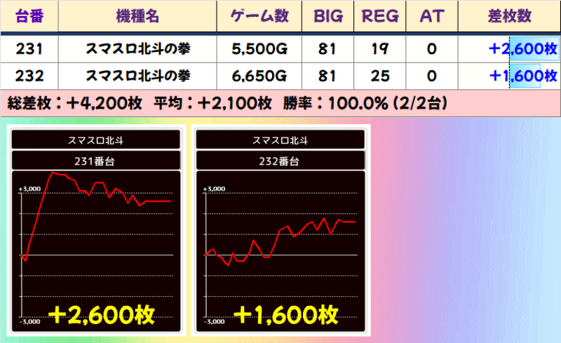 2台並び(231-232番台)☆平均差枚+2100枚☆