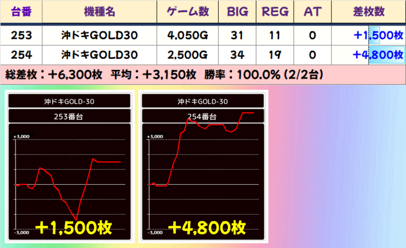 2台並び(253‐254番台)☆平均差枚+3150枚☆