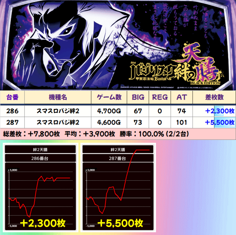 【2台並び】バジリスク絆2天膳(286‐287番台)☆平均差枚+3900枚☆