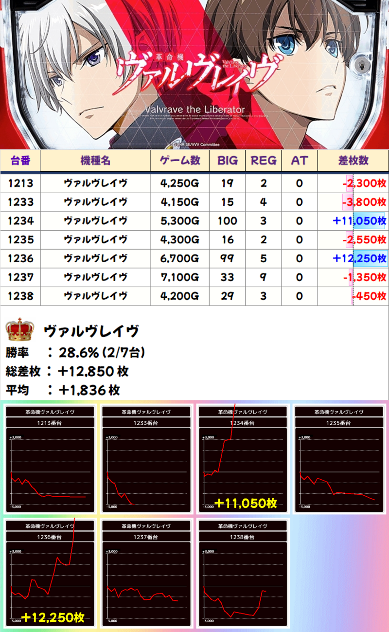 【1/3系濃厚】ヴァルヴレイヴ(2/7台)☆平均差枚+1836枚☆