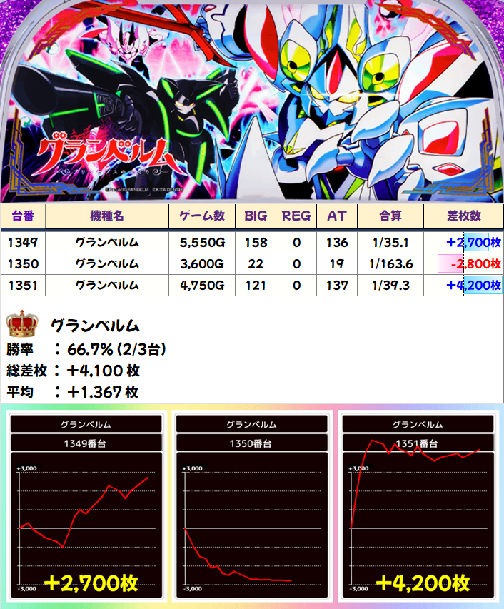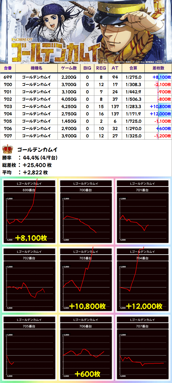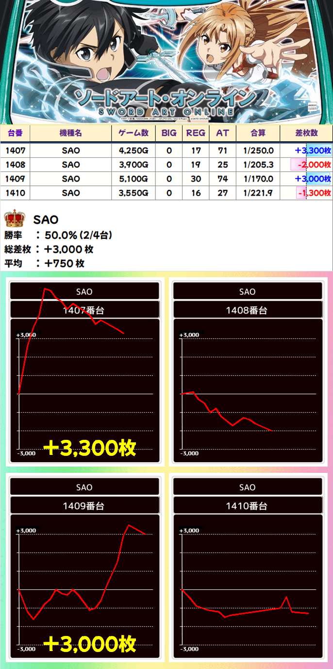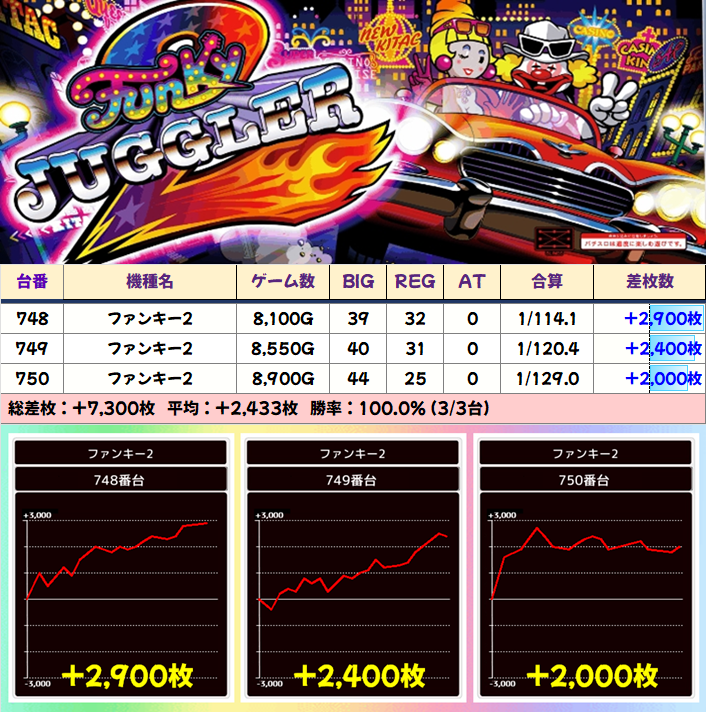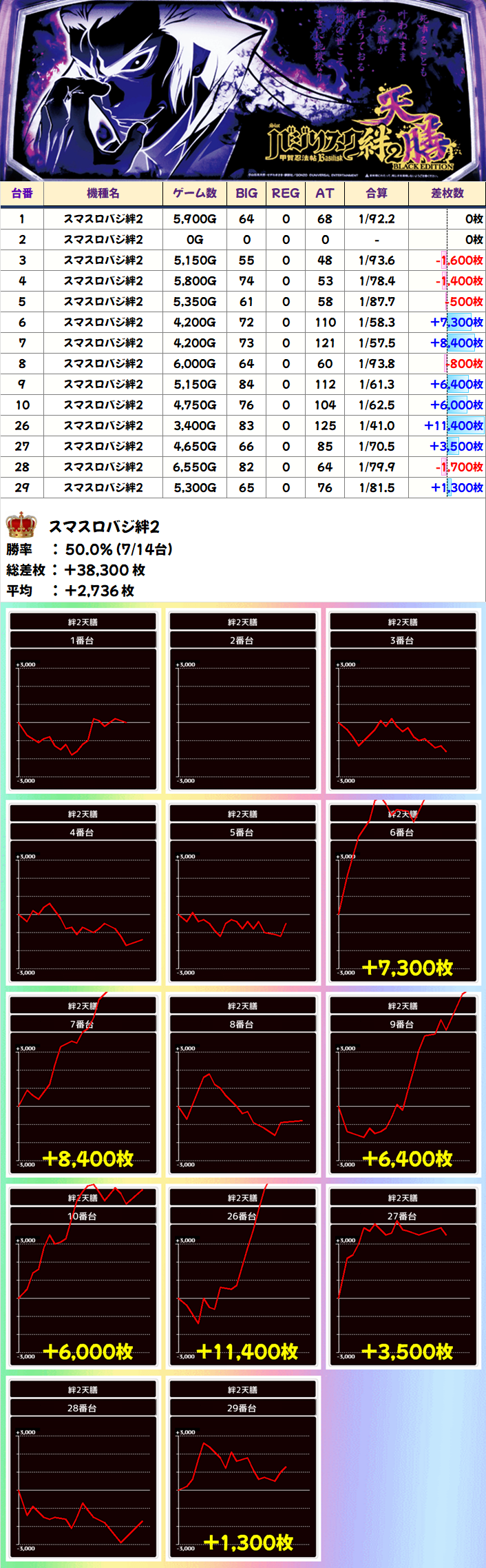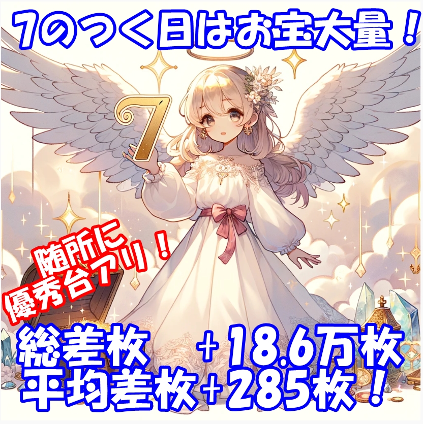 今回の7のつく日もしっかり結果を残してくれました!平均差枚+285枚&総差枚+約18.5万枚!