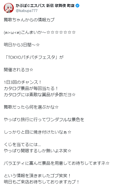 今回はエスパス歌舞伎町が力を入れている日の一つである『7のつく日』の結果をレポート!