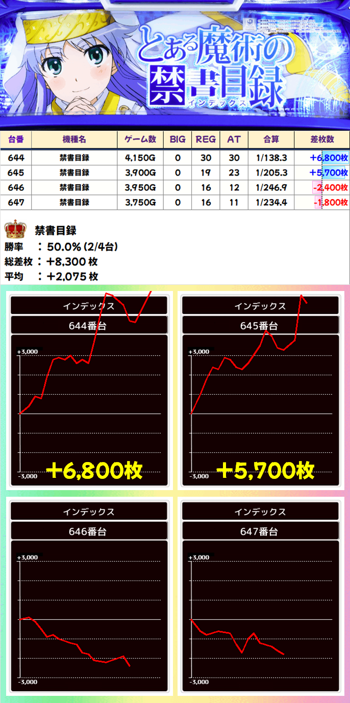 禁書目録 (2/4台+) ⏩Ave +2,075枚