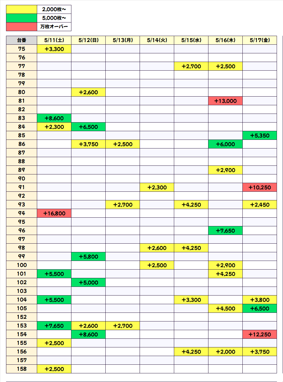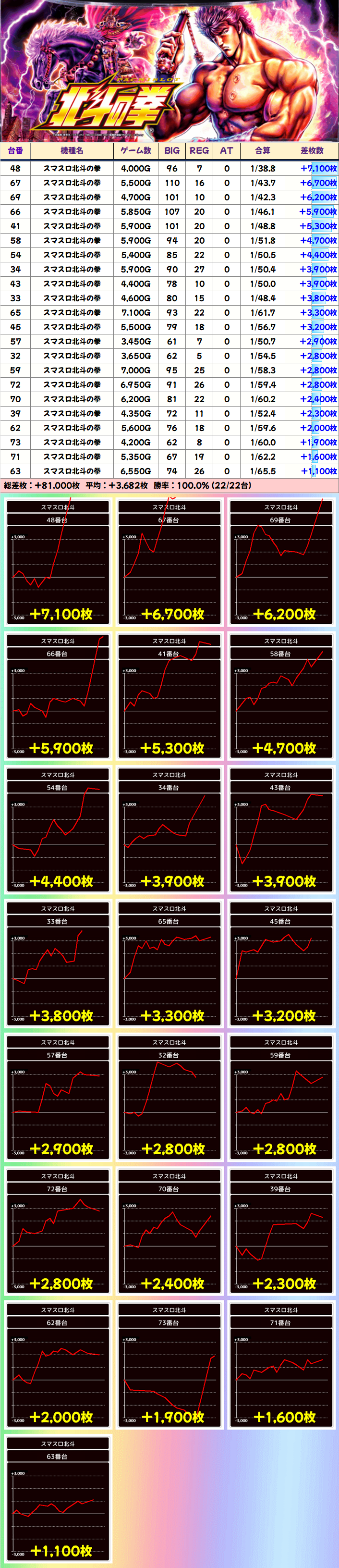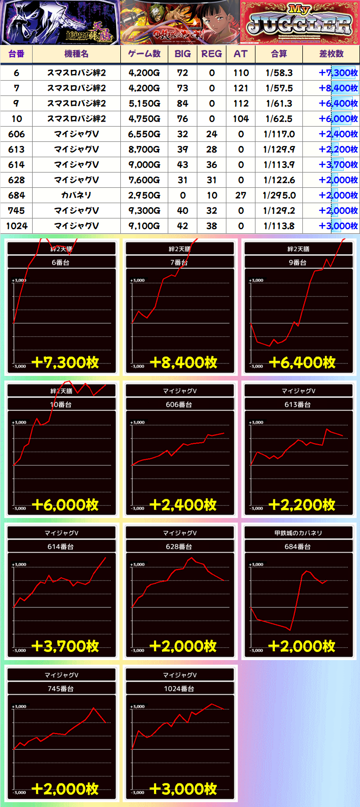 本日はなんと万枚が6台確認‼100台以上が2000枚と素晴らしい結果を残しました‼