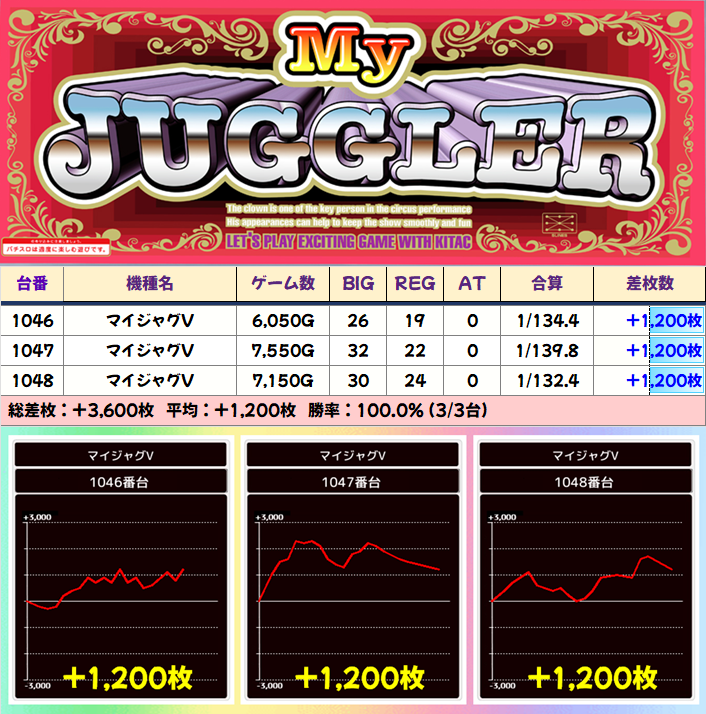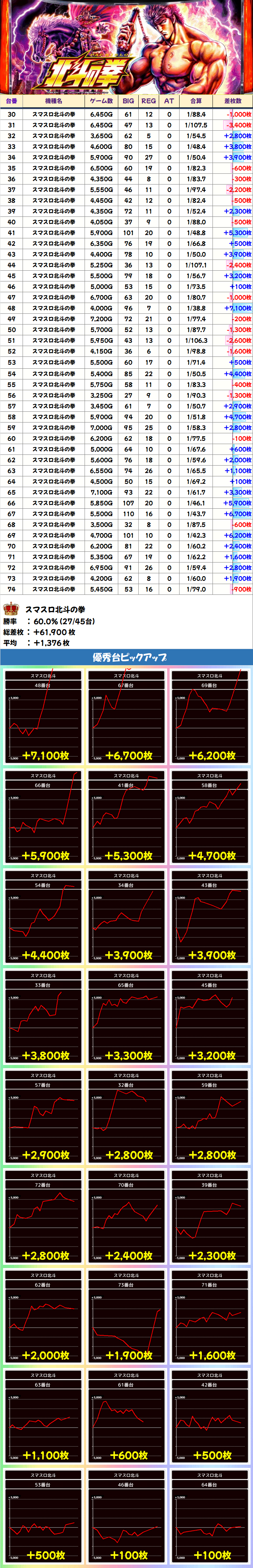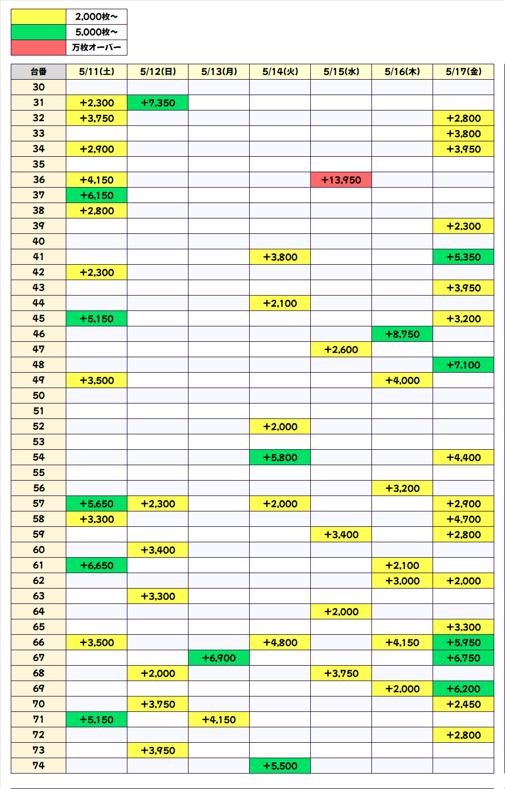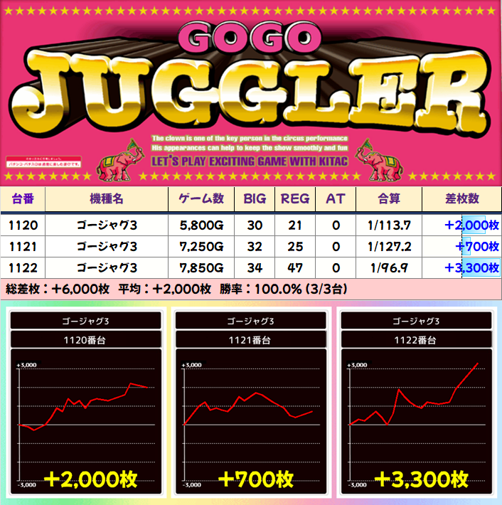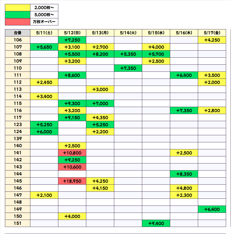 本日はなんと万枚が6台確認‼100台以上が2000枚と素晴らしい結果を残しました‼
