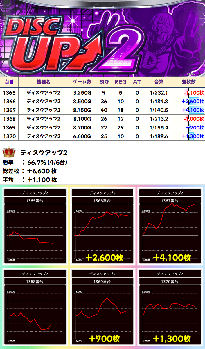 ディスクアップ2 (4/6台+) ⏩Ave +1,100枚