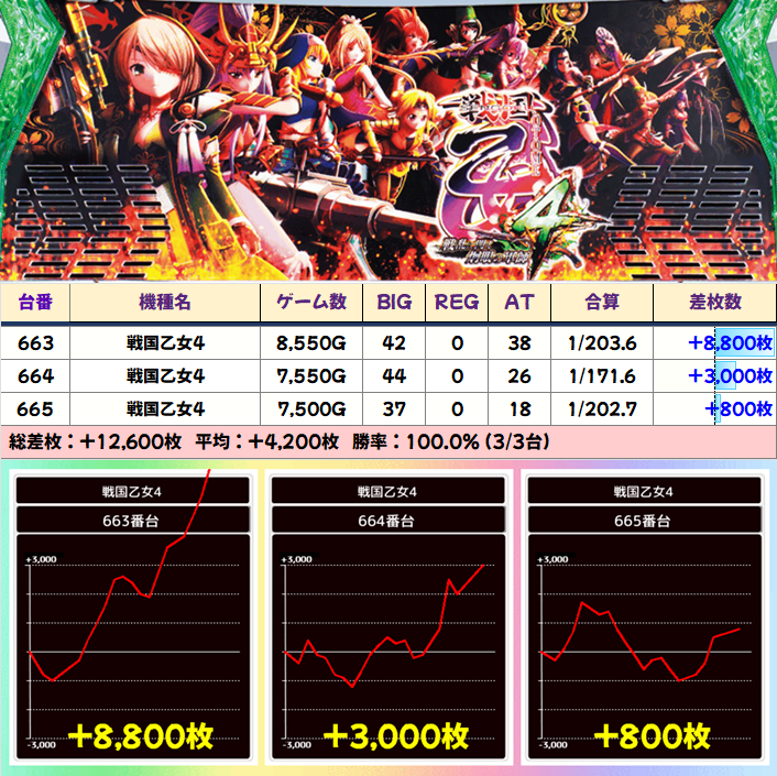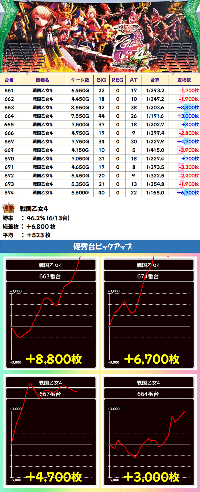 戦国乙女4 (6/13台+) ⏩Ave +523枚