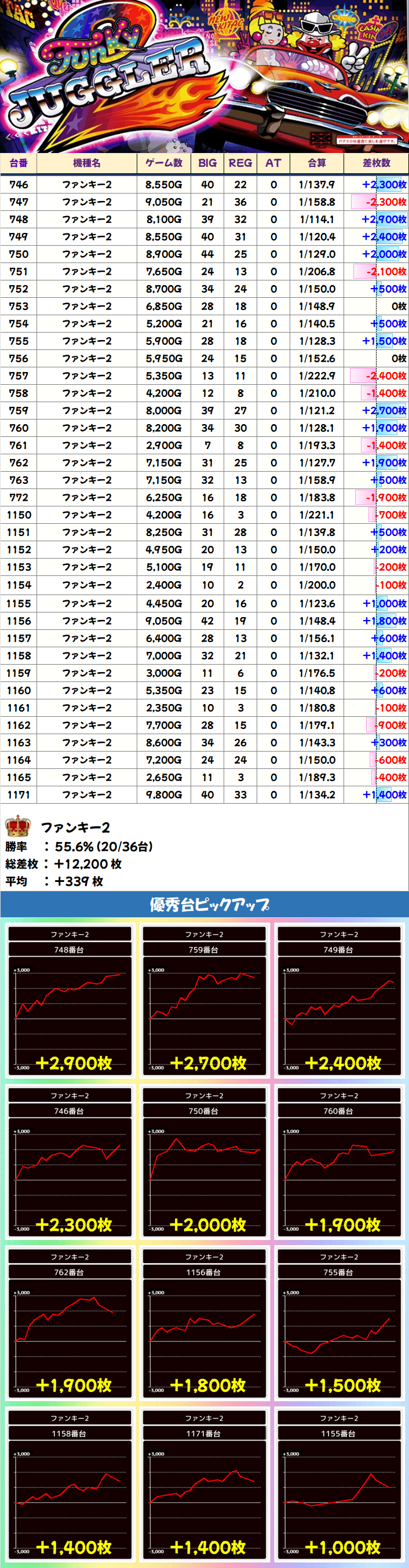 ファンキー2(20/36台+) ⏩Ave +339枚
