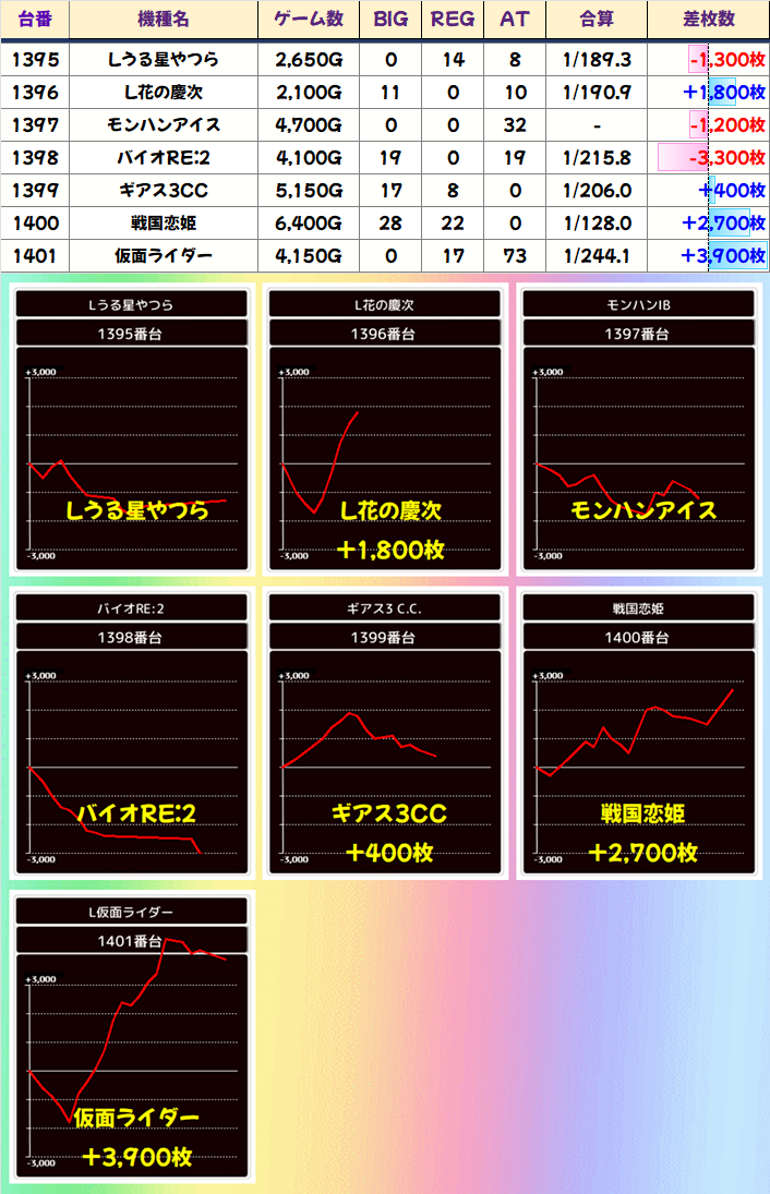 上記が「店長の独り言関連機種」だった模様!この4機種は高配分仕掛けだったようです!