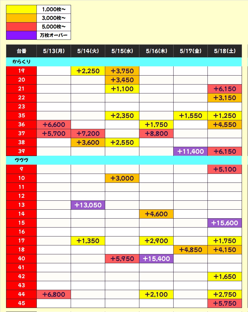 推すすめポスター期間中の「ヴヴヴ」「からくりサーカス」からも優秀台が多数出現!ヴヴヴからは万枚オーバー、+5000枚オーバー台も両機種から2台ずつ確認!そして現時点での期間中結果は👇