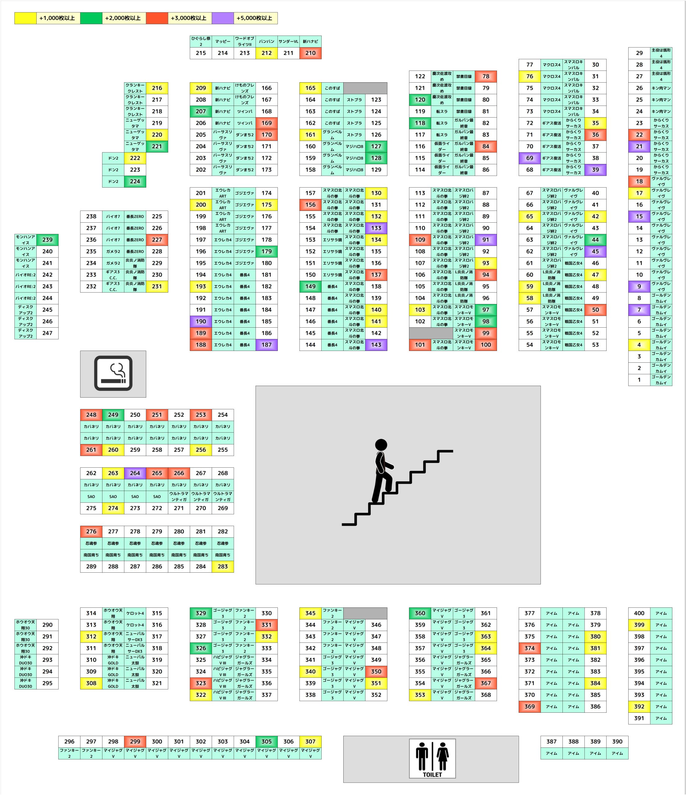 今回も多数の仕掛けが用意されていました!黒瀬さん効果でカバネリがとんでもないことに!また全台系やニブイチ以上系も多数!ジャグ系もモチロン抜かりなしでした!