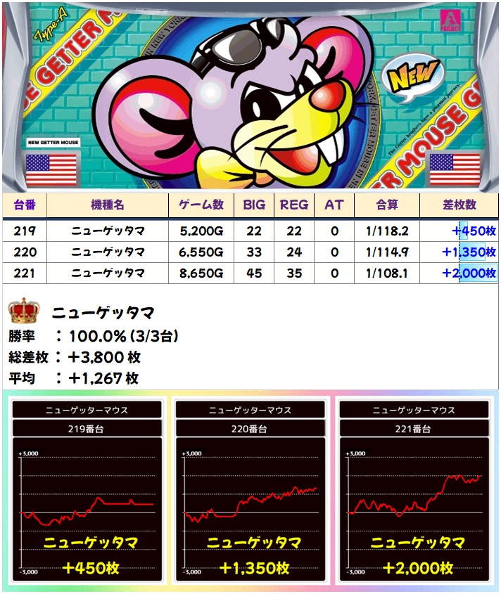 🌈ニューゲッタマ(3台)【平均+1267枚】