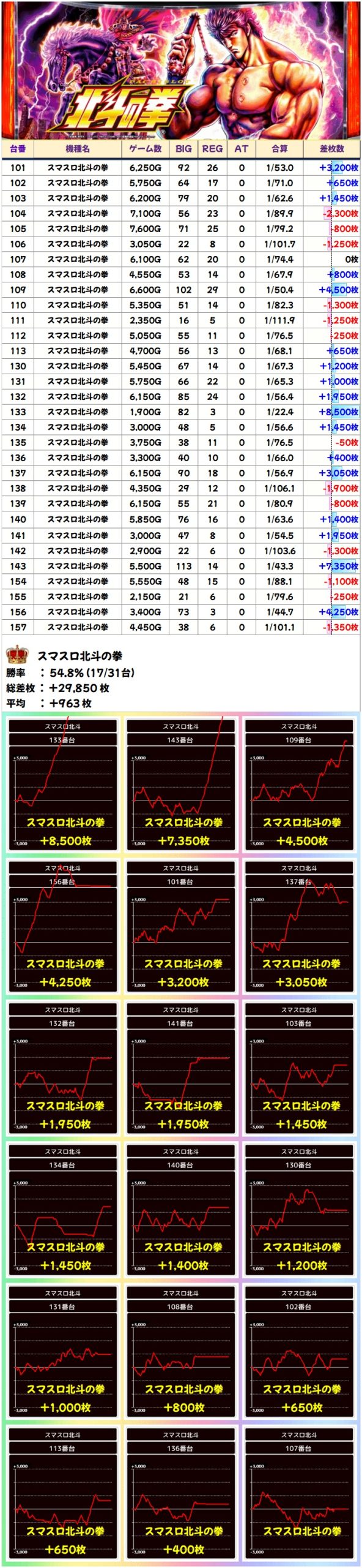 🌈スマスロ北斗の拳(31台)【平均+963枚】