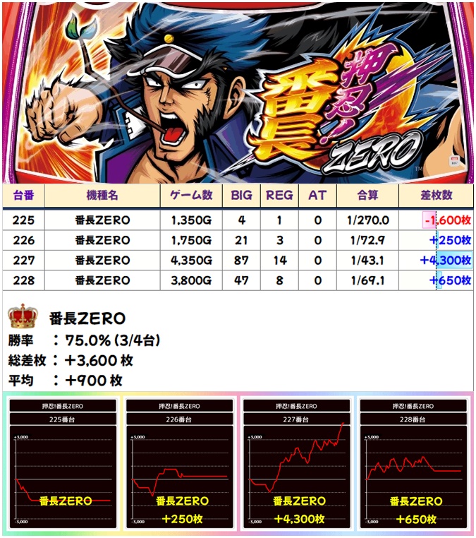 🌈番長ZERO(4台)【平均+900枚】