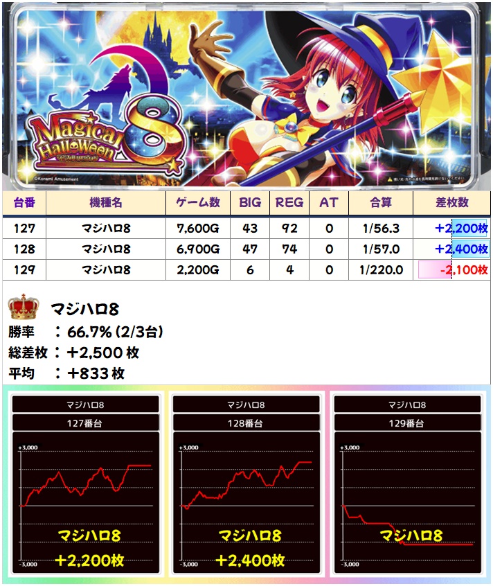 マジハロ8からは2/3でプラスと勝率ニブイチ以上!プラスだった2台はグラフ的にも優秀台で間違いなし!
