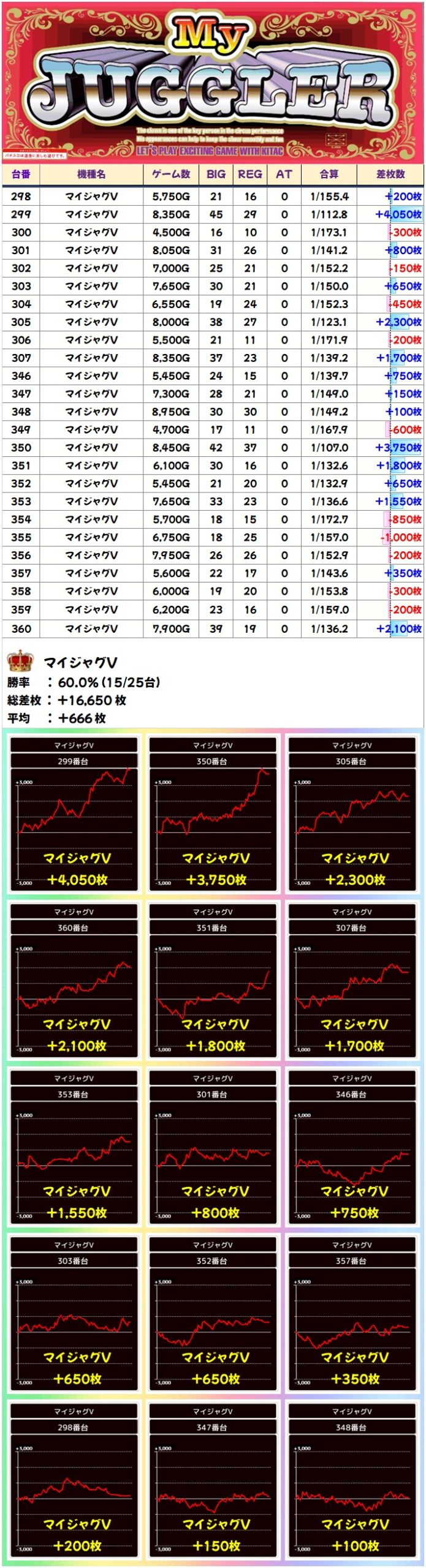 🌈マイジャグV(25台)【平均+666枚】