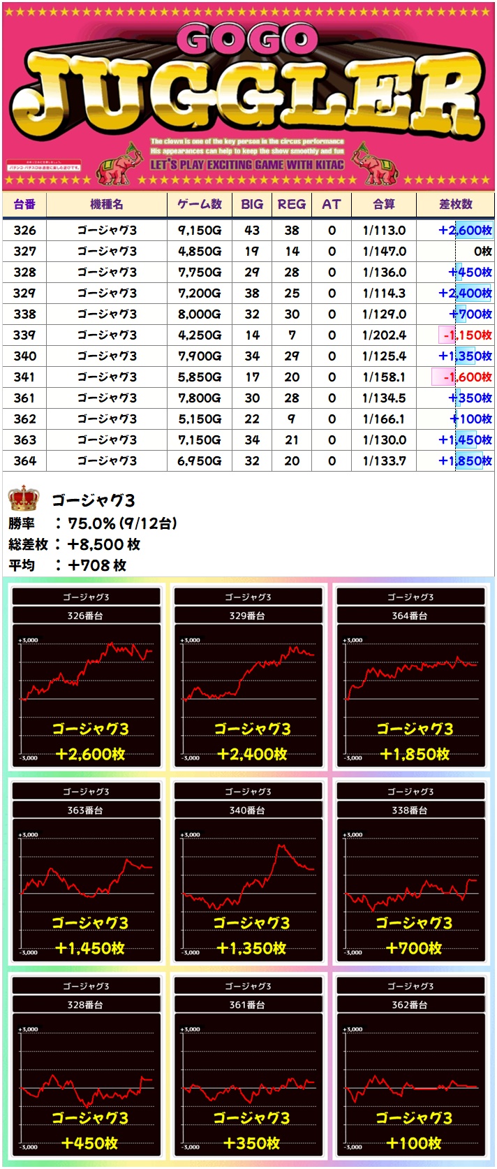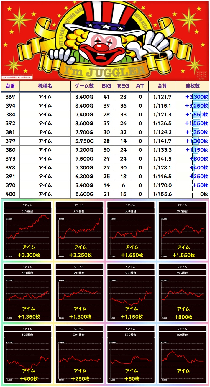モチロン単品優秀台は多数アリ! チャンスはしっかりと全体にありましたね!