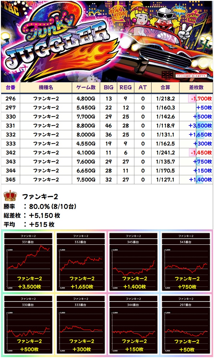 🌈ファンキー2(10台)【平均+515枚】
