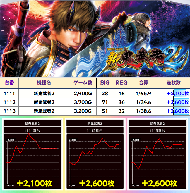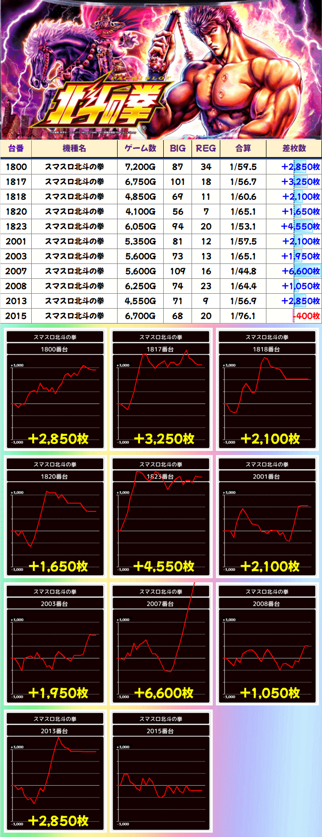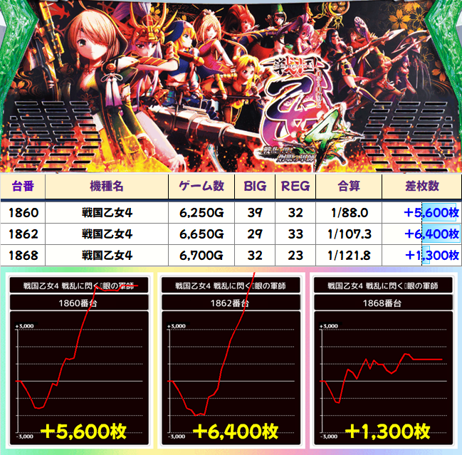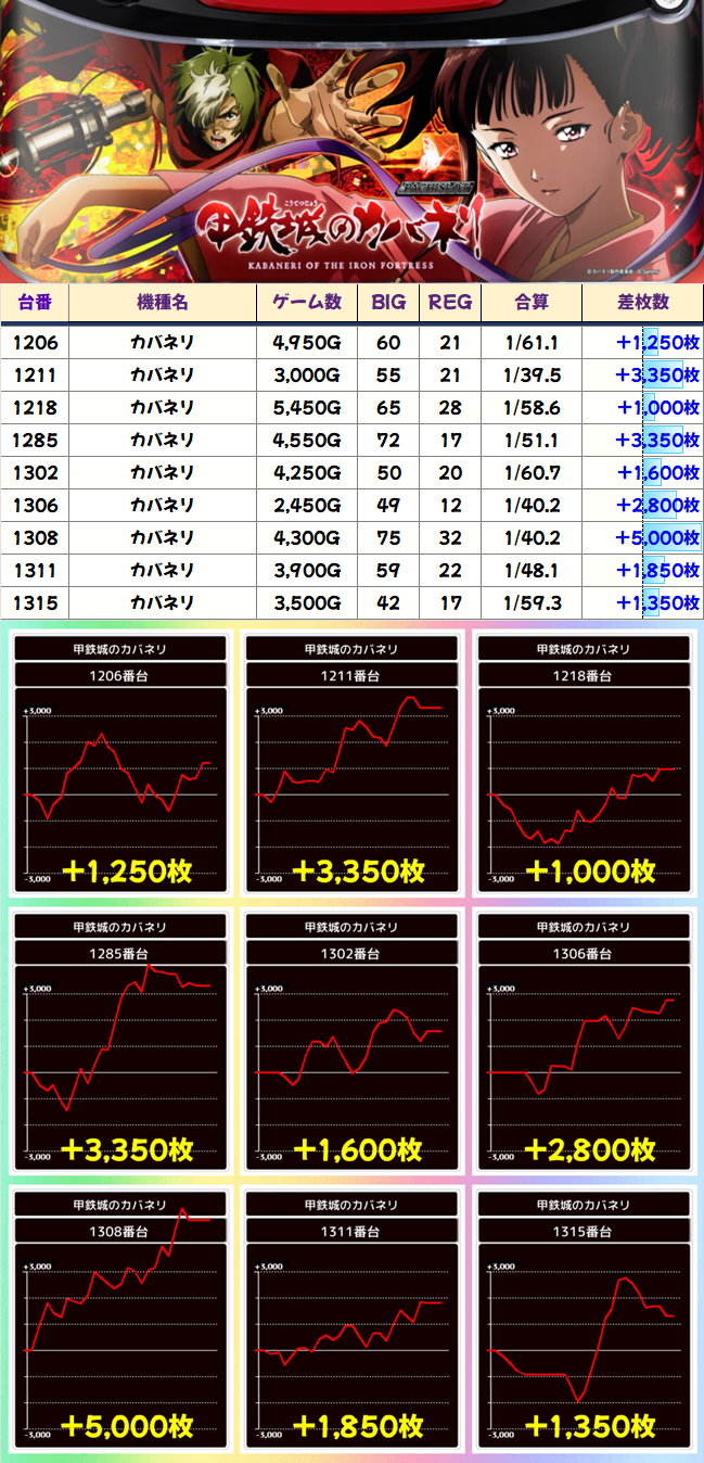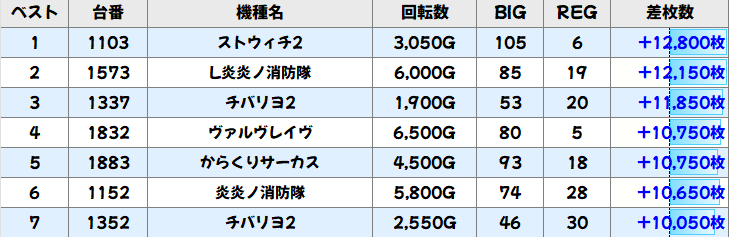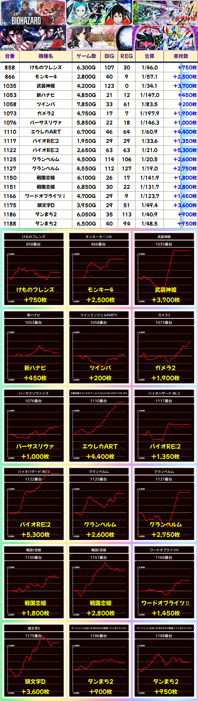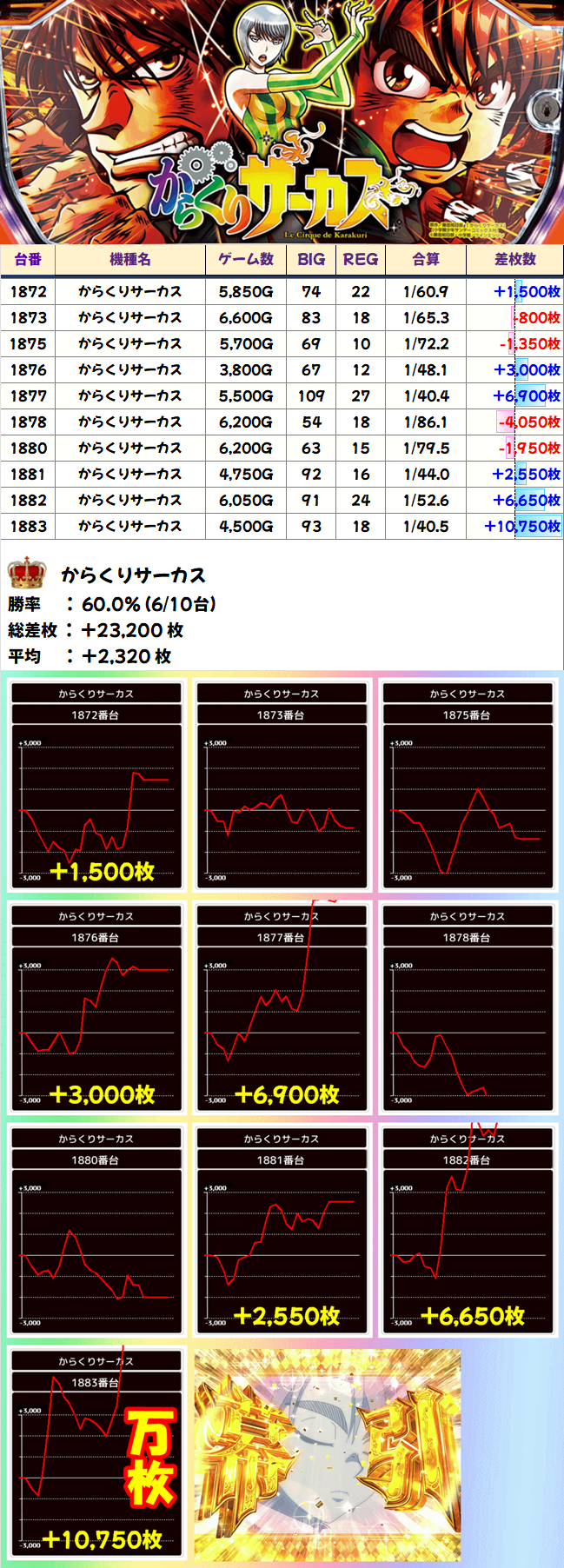 からくりサーカス、かなり派手な結果になっています。というより、この日は他でも相当派手な出玉が見えたのではないでしょうか。なぜなら…。