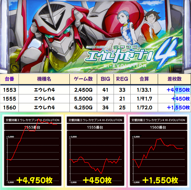 上記にあげた台のグラフ、いずれも大きな右下がりナシ。やはり通常時のモード移行が大事。