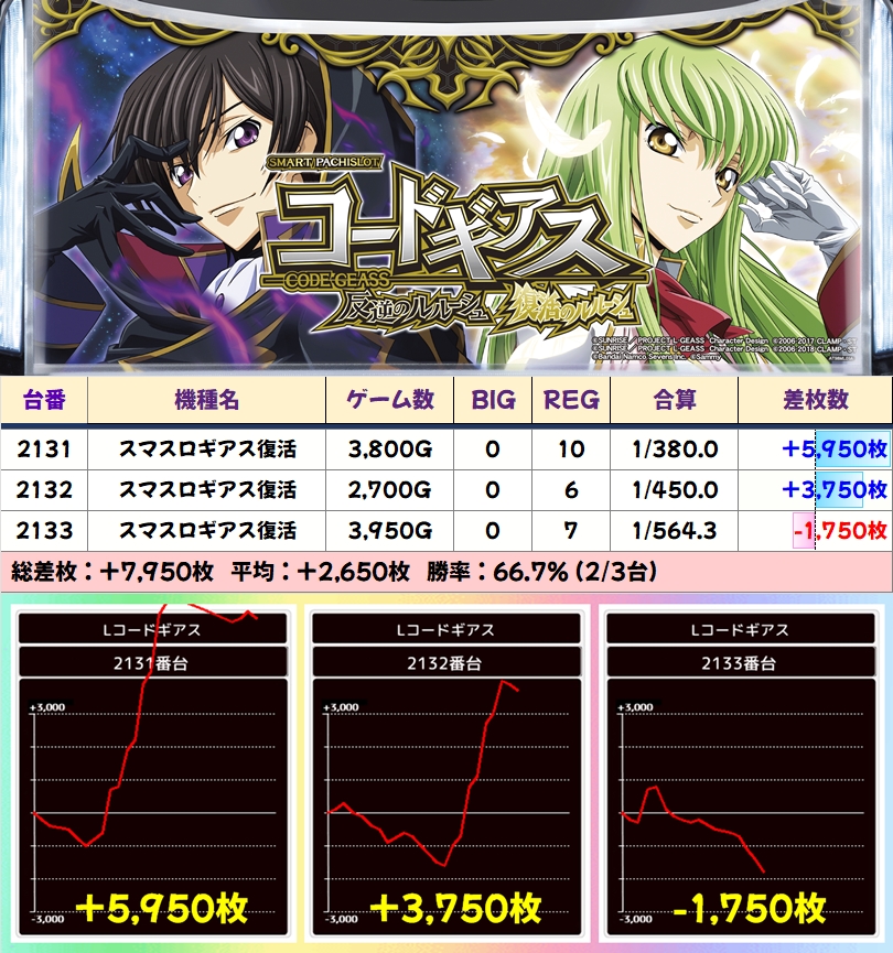 【全台系濃厚】スマスロギアス復活(3台)|平均:+2650枚