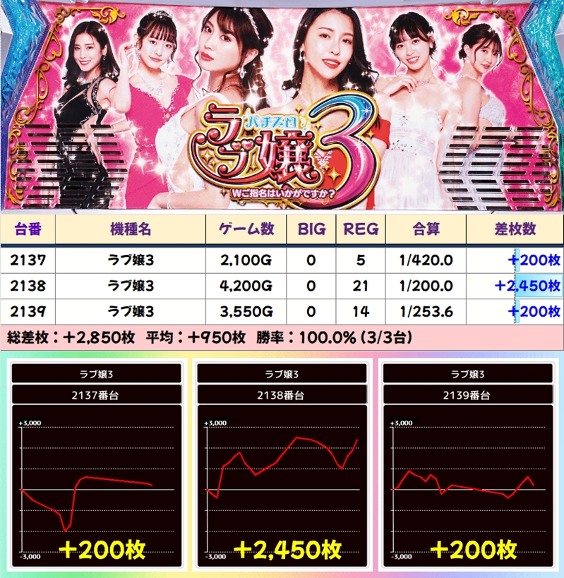 【全台系濃厚】ラブ嬢3(3台)|平均:+950枚