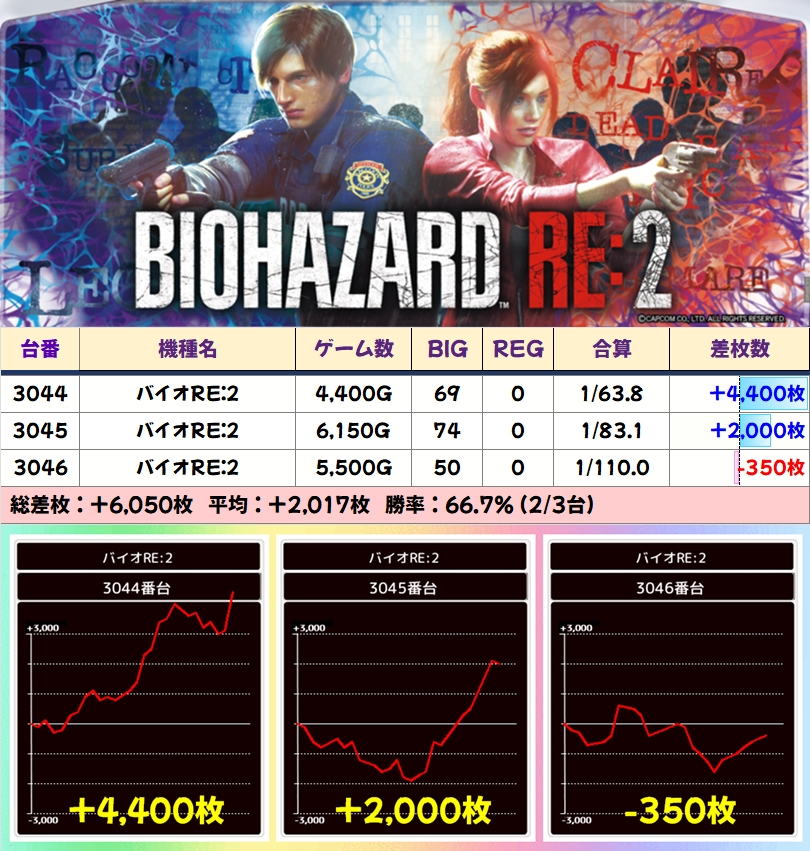 【全台系濃厚】バイオRE:2(3台)|平均:+2017枚