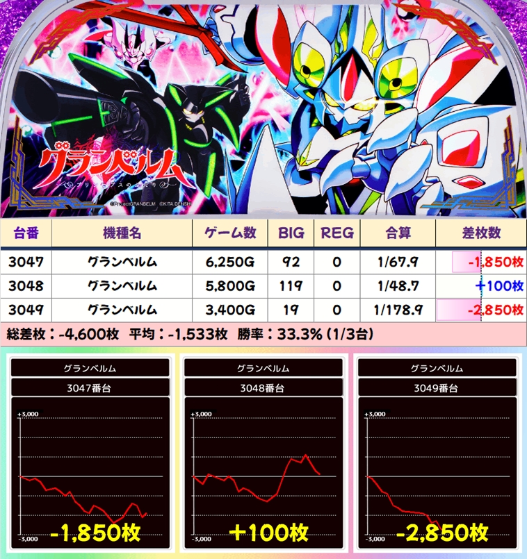 【全台系濃厚】グランベルム(3台)|平均:-1533枚