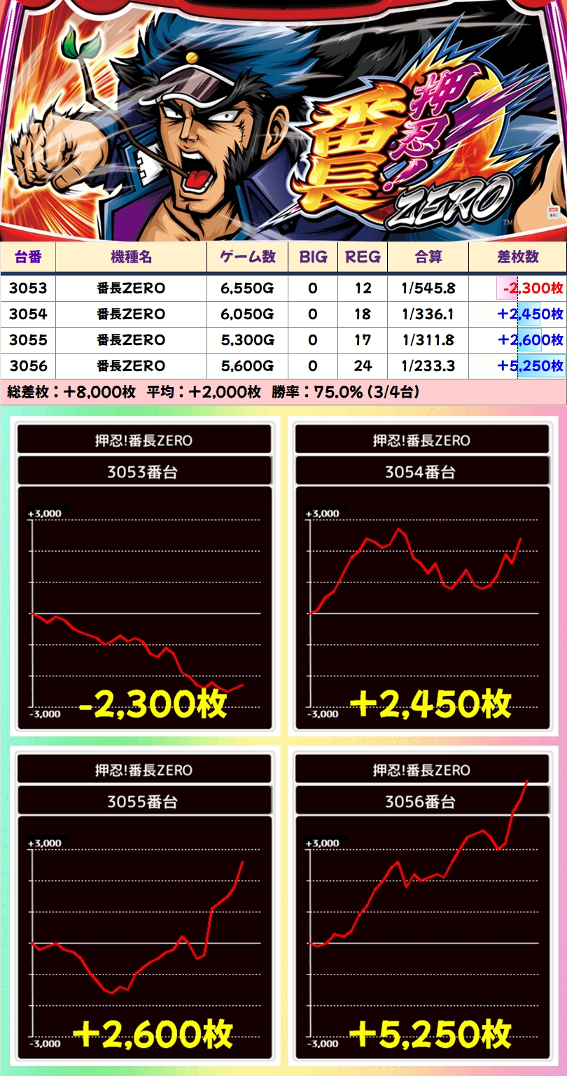 【全台系濃厚】番長ZERO(4台)|平均:+2000枚