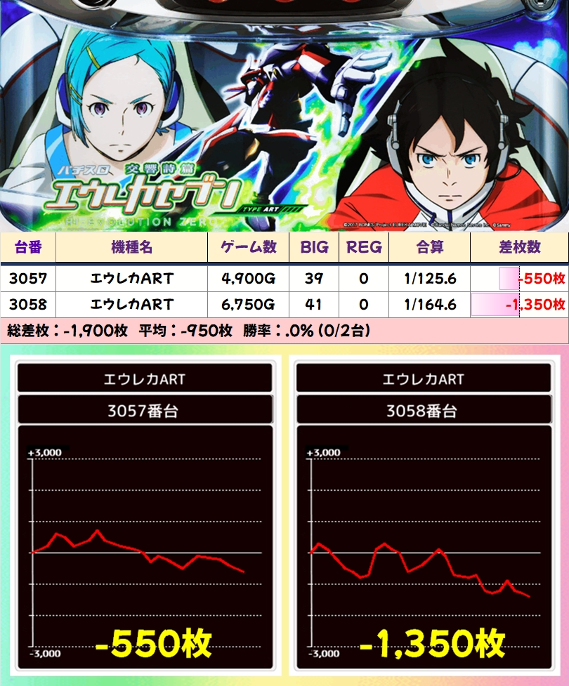 【全台系濃厚】エウレカART(2台)|平均:-950枚