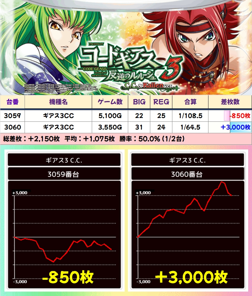 【全台系濃厚】ギアス3CC(2台)|平均:+1075枚