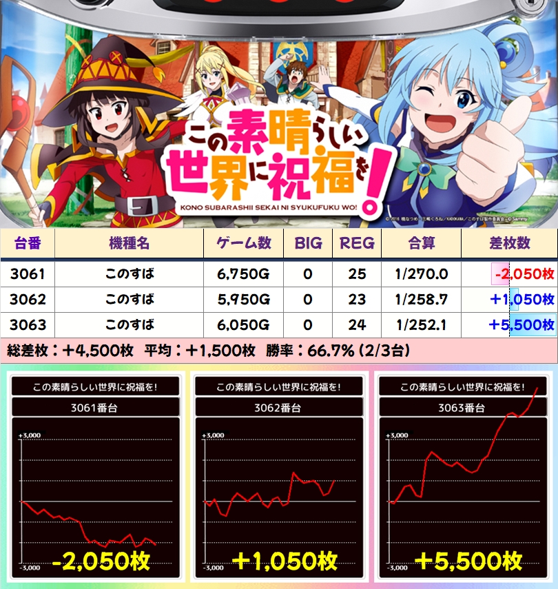 【全台系濃厚】このすば(3台)|平均:+2000枚