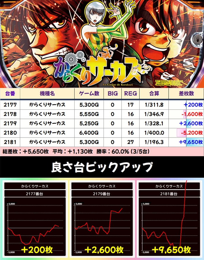 【1/2系濃厚】からくりサーカス(5台)|勝率:60.0%