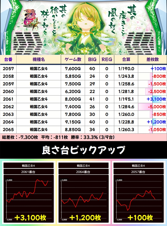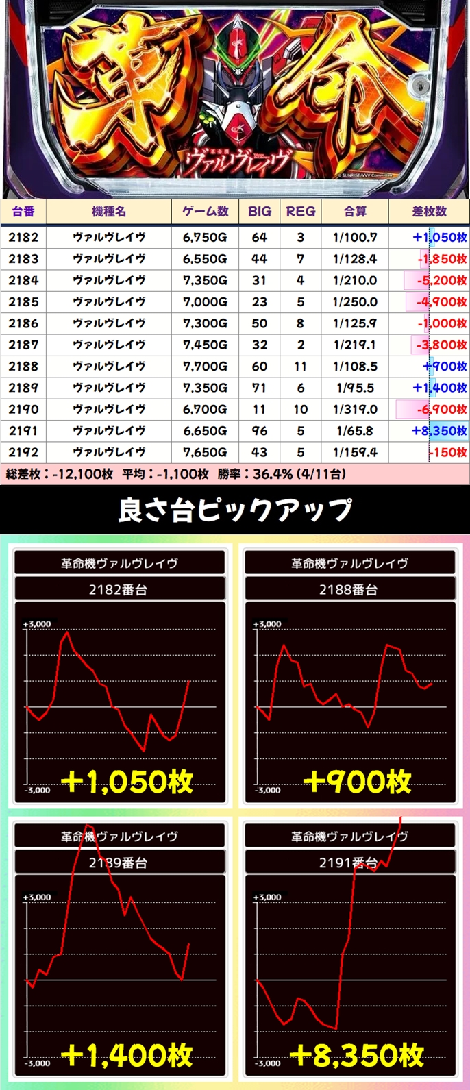 ヴヴヴから+8350枚が飛び出すなど、随所に爆発台がみられるまずまずの結果となりました!