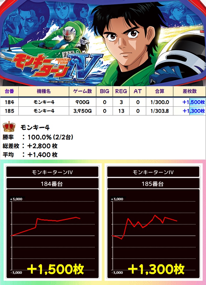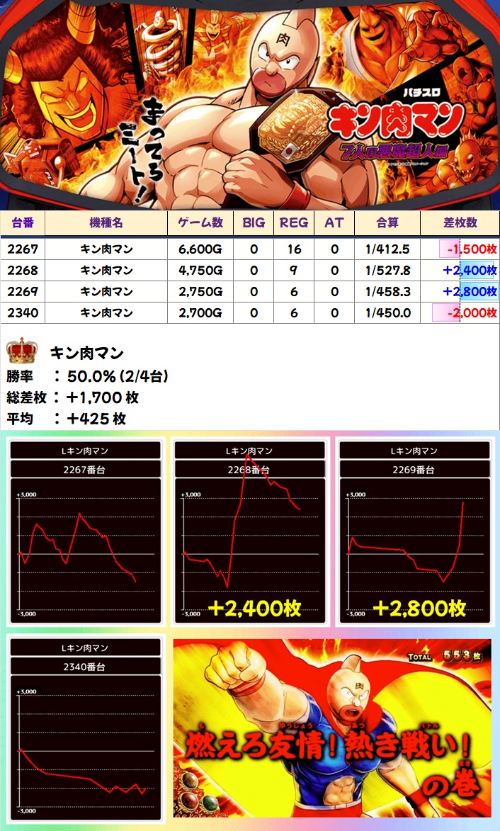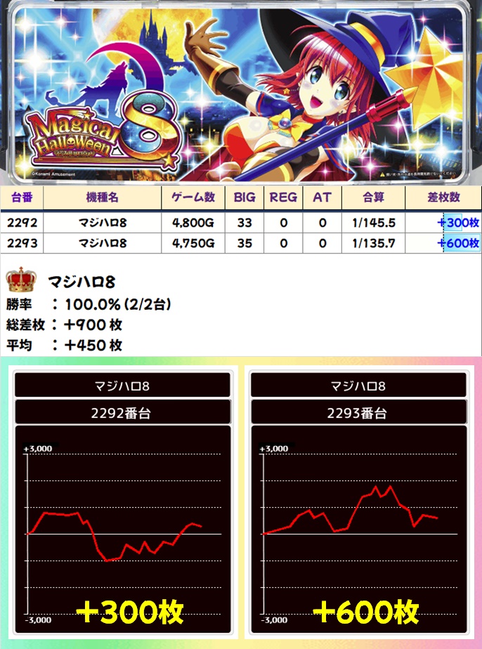 今回も概ね傾向通りの仕掛けで、台平均+189枚という好成績になりました。