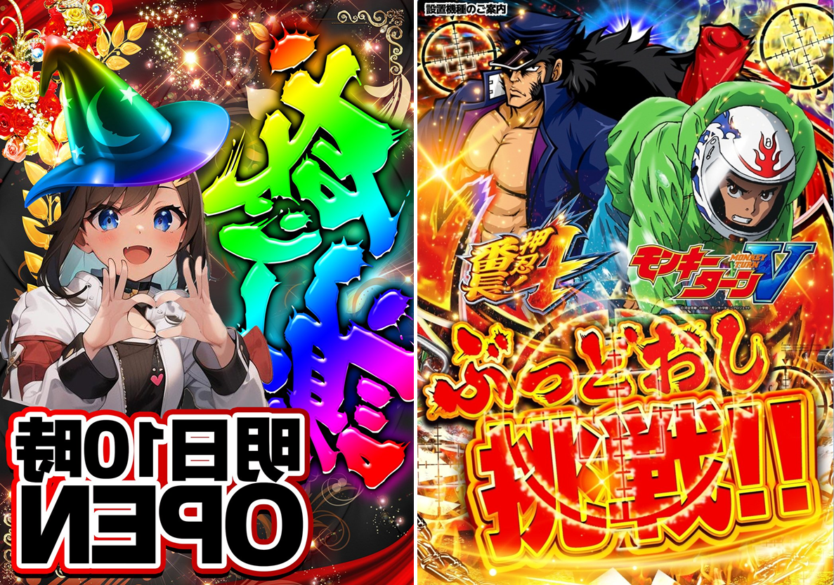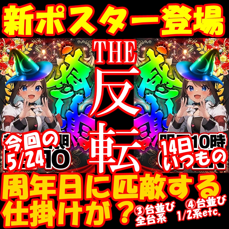 5月24日(金)|エスパス上野新館|周年日ポスターの「反転ver.」新登場。仕掛けも並び・全台系・1/2系を散りばめてきた!メインシマの番長4とモンキーV、北斗やアイムは仕掛け大量!?