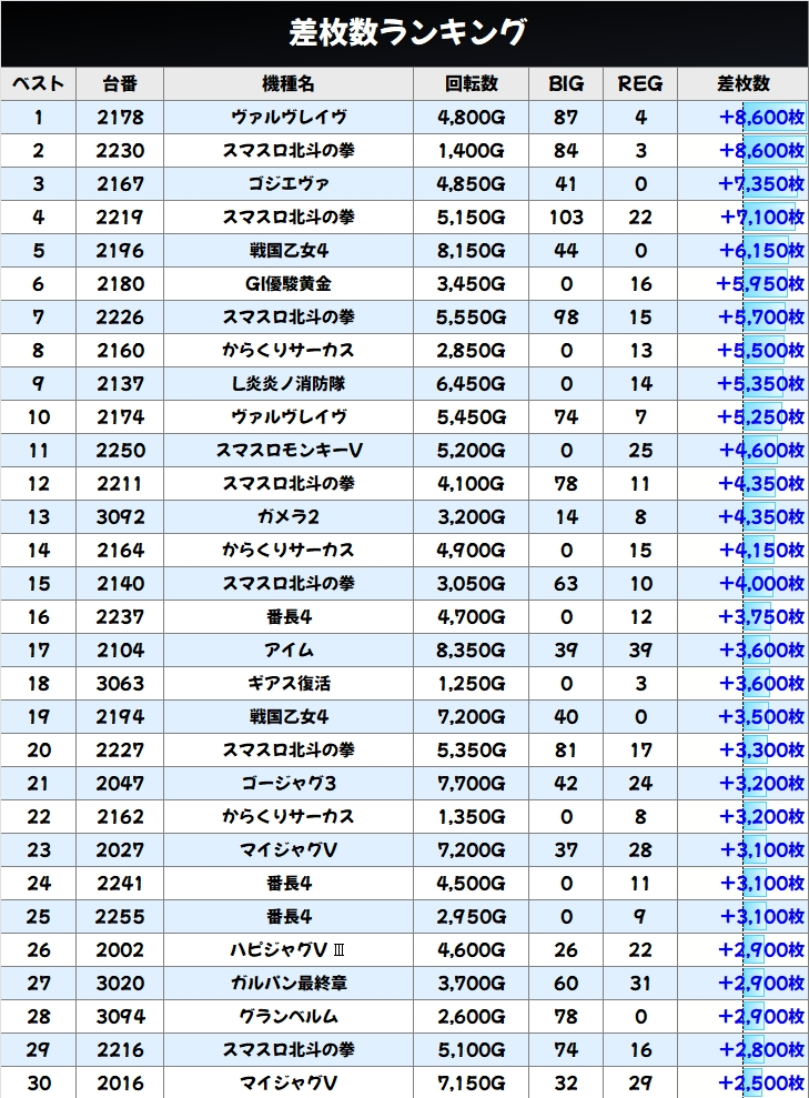 出玉BEST30位まで&島図チェック