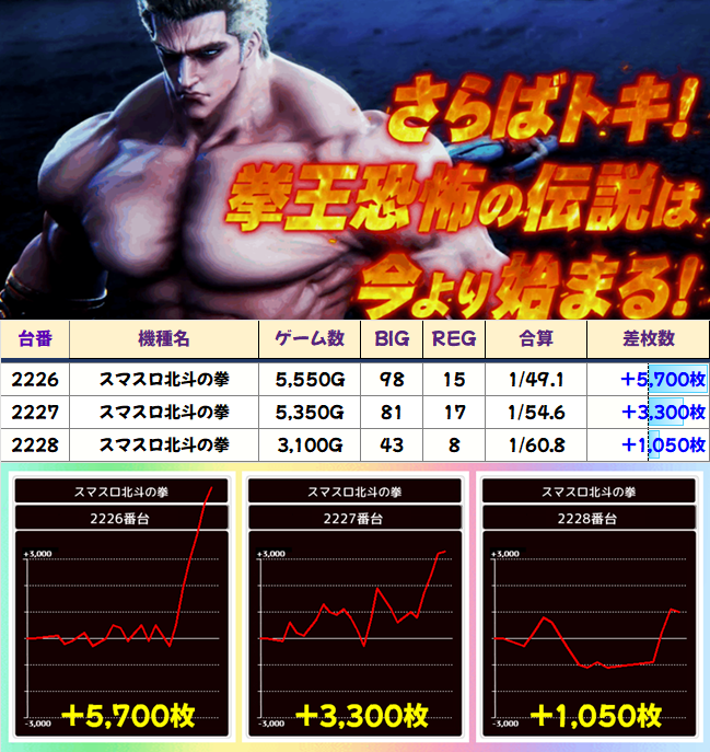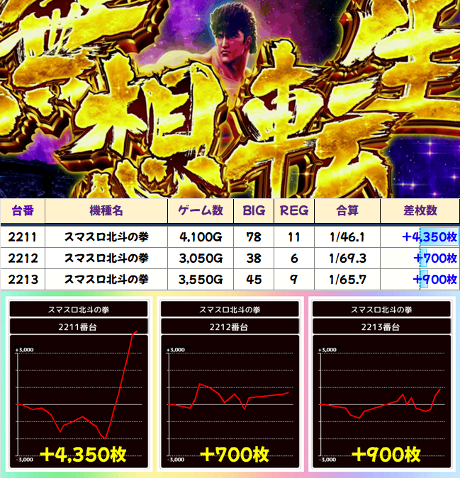 こちらも無想転生の一撃があるものの、そこまでの過程も優秀。隣の2227番台もBB回数ともに良い挙動です。
